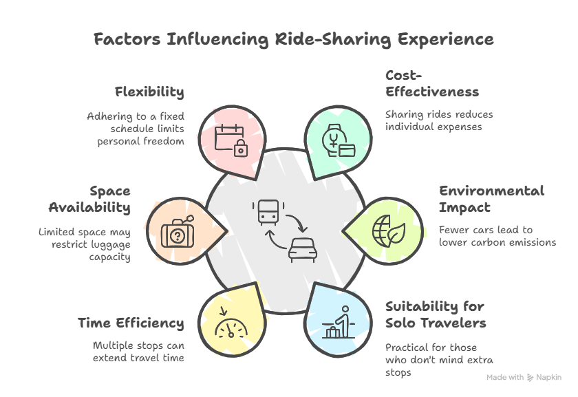 • Longer Travel Time – Multiple passenger drop-offs and pick-ups can add significant time.
